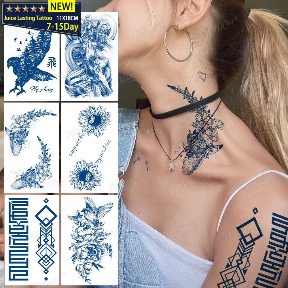 Neck Waterproof Temporary Tattoo Fish Goldfish Pisces Art Tatoo Stickers Flying Eagle Line Tatto Fake Tattoos For Girl Lady Kids Aliexpress